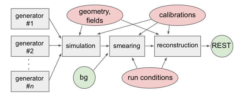 Fig. 2 Flow chart on simulation and reconstruction pipeline used at GlueX.#